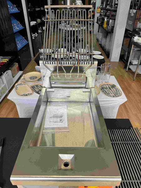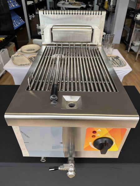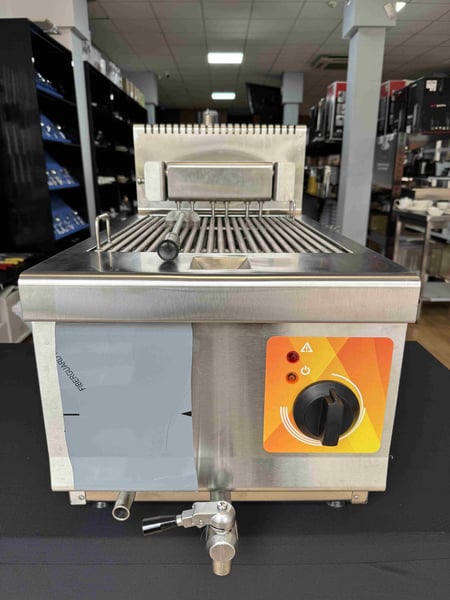 Электрический вапо гриль, позволить приготовить продукт с пароувлажнением, сохранив при этом свойства продукта. Данная модель выполнена из высококачественной нержавеющей стали, оснащен решеткой из прута толщиной 10 мм. Пристенный борт для вентиляции, поверхность нагревается трубчатыми ТЭНами, краник для слива жидкости. Возможно установить на подставку или стол. Работает как с технологичной линией 700 так и без.