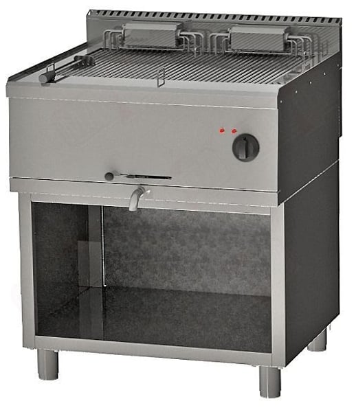 Электрический вапо гриль, позволить приготовить продукт с пароувлажнением, сохранив при этом свойства продукта. Данная модель выполнена из высококачественной нержавеющей стали, оснащен решеткой из прута толщиной 10 мм. Пристенный борт для вентиляции, поверхность нагревается трубчатыми ТЭНами, краник для слива жидкости. Возможно установить на подставку или стол. Работает как с технологичной линией 700 так и без.