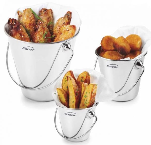 Ведро для подачи выполнено из высококачественной нержавеющей стали. Изноустойчивая высокого качества, которая не позволяет блюдам окисляться, поэтому в такой посуде можно хранить пищу.
