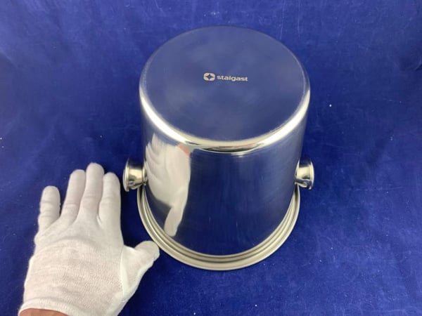 Ведро применяется в ресторанах для подачи охлажденного шампанского. Ведро для льда и шампанского выполнено из высококачественной нержавеющей стали 18/10. Это наиболее стойкий материал с высокими антикоррозийными характеристиками.