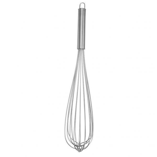 Профессиональный венчик c ручкой изготовлен из качественной нержавеющей стали, имеет 8 твердых прутьев. Благодаря наличию ушка на ручке, венчик можно подвесить в удобное и заметное место на кухне, чтобы он всегда был под рукой.