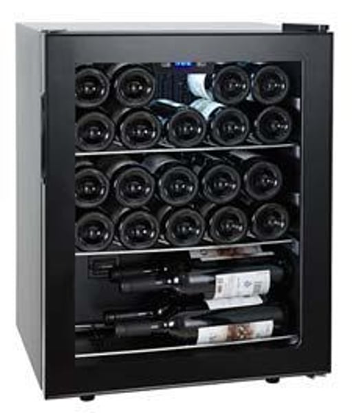 Корпус шкафа внешне выполнен из окрашенного метала, внутри из пластика. Объем 60л рассчитан для хранения до 23 бутылок при диапазоне температур - от +5 до +20 °С, решетчатые полки 2+1, внутреняя LED - подсветка. Стеклянная дверь предоставляет выкладку напитка и тем самым позволит определить место расположение нужной бутылки, не открывая дверцу.