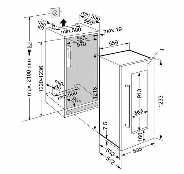 Большой встраиваемый винный шкаф Liebherr – это встраиваемый шкаф в нишу, с двумя независимо управляемыми температурными зонами.