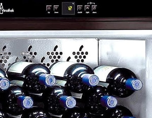 Внутренняя подсветка размещена над верхней полкой таким образом, чтобы свет не воздействовал на качества и вкус вина.