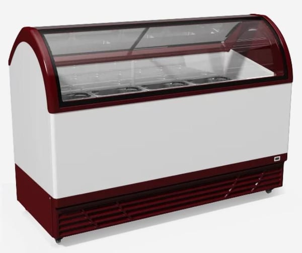 Витрина для мороженого работает в системе статического холода, дает возможность не только реализовывать и экспонировать продукцию в оборудовании, а и сохранять ее после закрытия торговой точки.