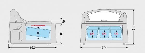 вместимость 3 емкости - mm. 360x150x120
