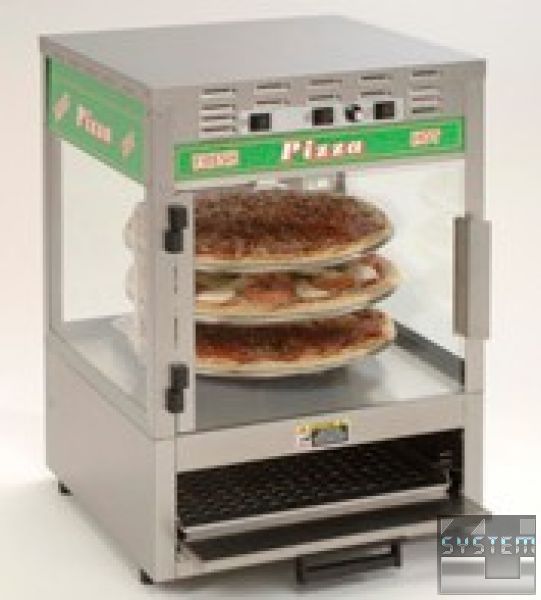 Витрина с функцией автономной печи для приготовления охлажденной или замороженной пиццы диаметром 356 мм. С регулируемой опорной рамой. Витрина обогревается и подсвечивается 4-мя лампами накаливания, расположенными в верхней части. Площадь обогрева контролируется нагревательным элементом термостата, не требующего установки и регулирования. Полнообзорный дизайн.Подносы для сбора крошек. Поворотная демонстрация.
