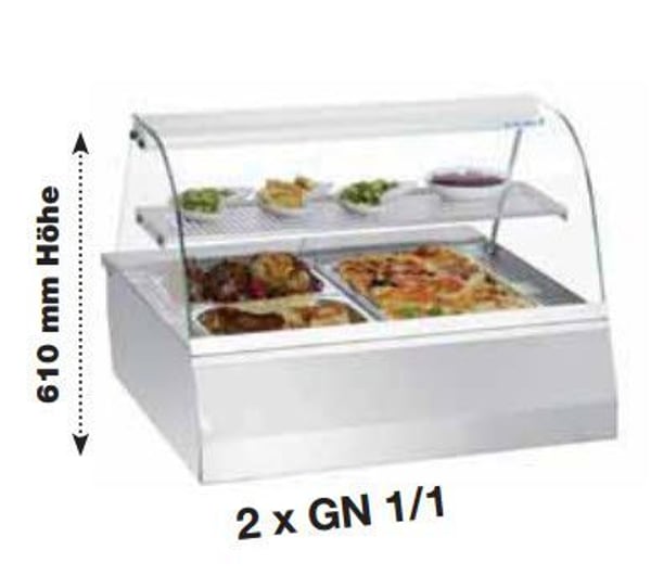 Тепловая витрина это электрическое настольное оборудование которое будет служить вам, и вашему предприятию для сохранности и презентации приготовленых блюд, которые подают в теплом виде. Это может быть такая пища как : мясо, птица, круасаны, пироги, бургеры и пицца. Оборудование имеет полки-решетки. Витрина внутренне освещается. Присутствует резервуар для воды и увлажнения воздуха в камере. Корпус выполнен из нержавеющей стали.