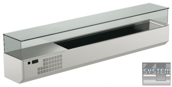 Настольные барные витрины - предназначены для кратковременного хранения и демонстрации, предварительно охлажденных продуктов (салатов, закусок, гарниров) в магазинах, кафе, барах, ресторанах, суши-барах. Наиболее широко применяются в пиццериях для хранения топпинга (начинки для пиццы).