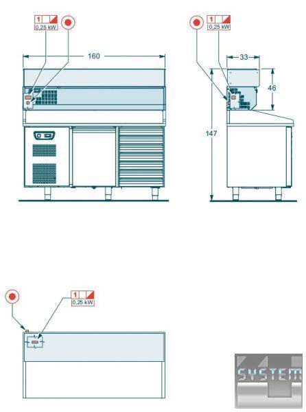 Имеются четыре варианта длины (142; 160; 207 и 259 см.) и два варианта глубины (33 и 37 см.) Gastronorm;