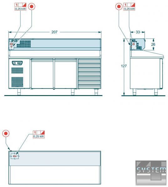 Имеются четыре варианта длины (142; 160; 207 и 259 см.) и два варианта глубины (33 и 37 см.) Gastronorm;