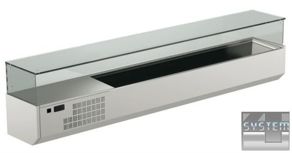 Настольные барные витрины - предназначены для кратковременного хранения и демонстрации, предварительно охлажденных продуктов (салатов, закусок, гарниров) в магазинах, кафе, барах, ресторанах, суши-барах. Наиболее широко применяются в пиццериях для хранения топпинга (начинки для пиццы).