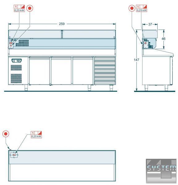 Имеются четыре варианта длины (142; 160; 207 и 259 см.) и два варианта глубины (33 и 37 см.) Gastronorm;