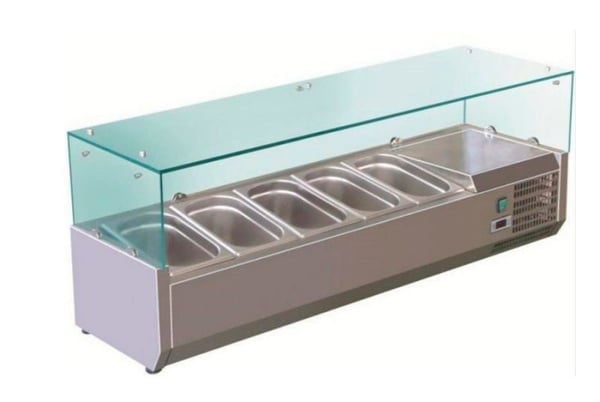 Настольная холодильная витрина для топпинга используется для предварительного охлаждения, демонстрации и кратковременного хранения заготовок, салатов, закусок, гарниров в ресторанах, магазинах, барах, суши-барах. Наиболее широко применяются в пиццериях для хранения топпинга - начинки для пиццы.