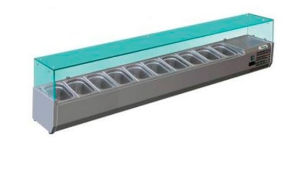 Настольная холодильная витрина для топпинга используется для предварительного охлаждения, демонстрации и кратковременного хранения заготовок, салатов, закусок, гарниров в ресторанах, магазинах, барах, суши-барах. Наиболее широко применяются в пиццериях для хранения топпинга - начинки для пиццы.