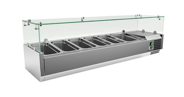 Настольная холодильная витрина для топпинга используется для предварительного охлаждения, демонстрации и кратковременного хранения заготовок, салатов, закусок, гарниров в ресторанах, магазинах, барах, суши-барах. Наиболее широко применяются в пиццериях для хранения топпинга - начинки для пиццы.