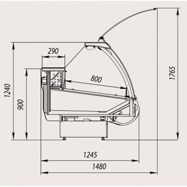 Витрины РОСС Delia используют магазины с большой торговой площадью. Эта модель предназначена для представления и реализации молочных, рыбных, колбасных, мясных товаров. Запасной холодильный бокс позволяет сохранять дневной запас пищевых продуктов. Глубина выкладки товаров увеличина до 80 см. для изготовления полки продавца и выкладки использован безопасный материал - нержавеющая сталь. Гнутое фронтальное каленое стекло открывается вверх с помощью газовых лифтов. Предусмотрена автоматическая оттайка.