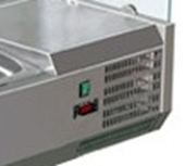 Настольная холодильная витрина используется для предварительного охлаждения, демонстрации и кратковременного хранения заготовок, салатов, закусок, гарниров в ресторанах, магазинах, барах, суши-барах. Наиболее широко применяются в пиццериях для хранения топпинга – начинки для пиццы. Обычно они отделяют прилавочную зону от самого зала или располагаются вдоль линии самообслуживания. Оборудование сделано из высококачественных сертифицированных материалов.