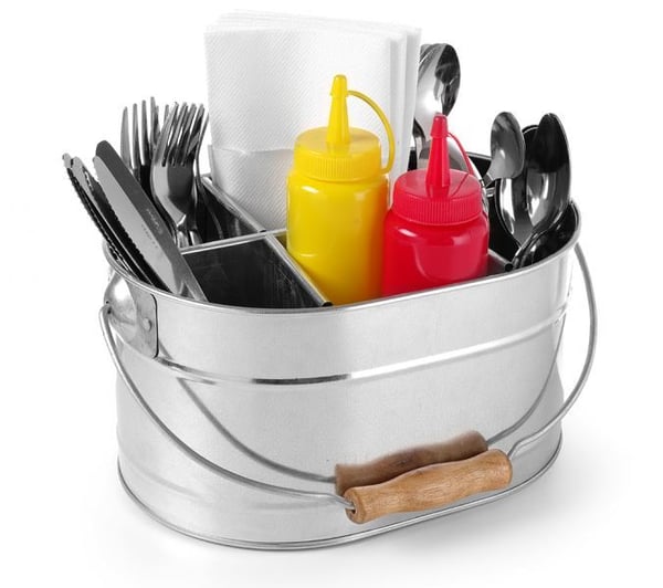 Ящик с делениями для столовых приборов из оцинкованнной стали идеально подойдет для подачи столовых приборов и салфеток, станет оригинальным и практичным дополнением любого стола.