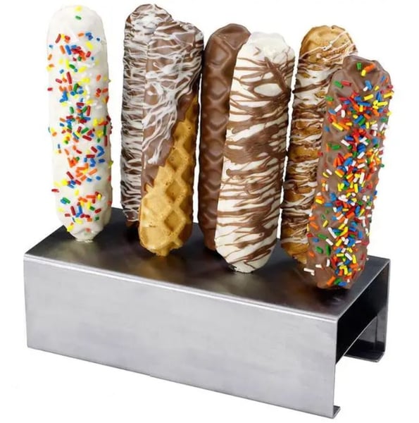 Корн-дог – це оригінальний спосіб приготування сосисок на паличці, які запікаються у фігурному тесті. Апарат корн-дог використовують у ресторанах, місцях торгівлі, кафе та фаст-фуд закладах для випікання сосисок у тесті, а також десертів – вафлі на паличці із фруктовою начинкою.