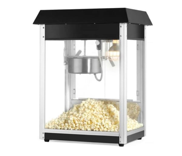 Машина для попкорну вимагає незначних витрат при високій віддачі, простота та зручності в експлуатації обладнання, мінімальні робочі площі та максимальна мобільність. Орієнтовний час приготування середньої склянки 2 хвилини.