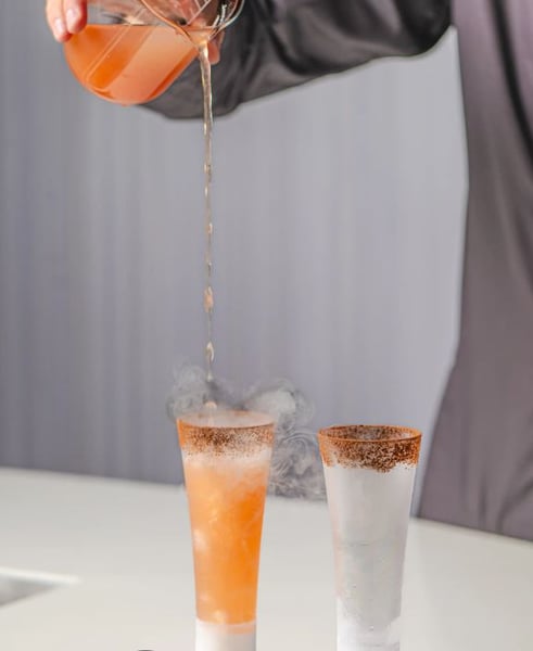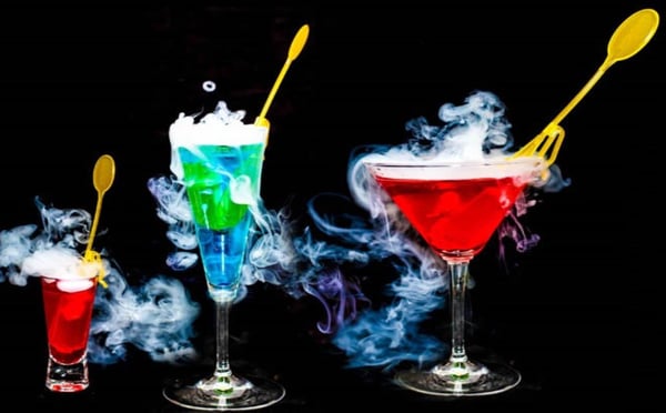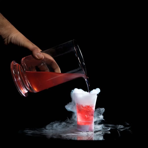 6)Коли напій наливається в стакан, він взаємодіє з сухим льодом, і виробляє димний ефект.