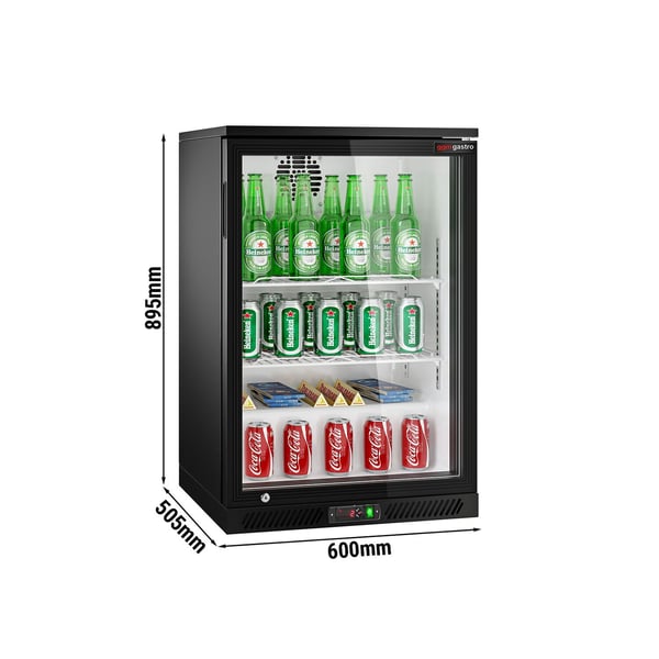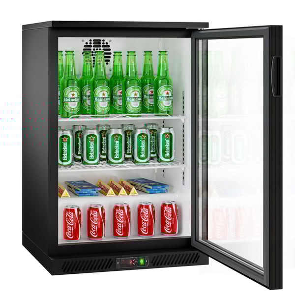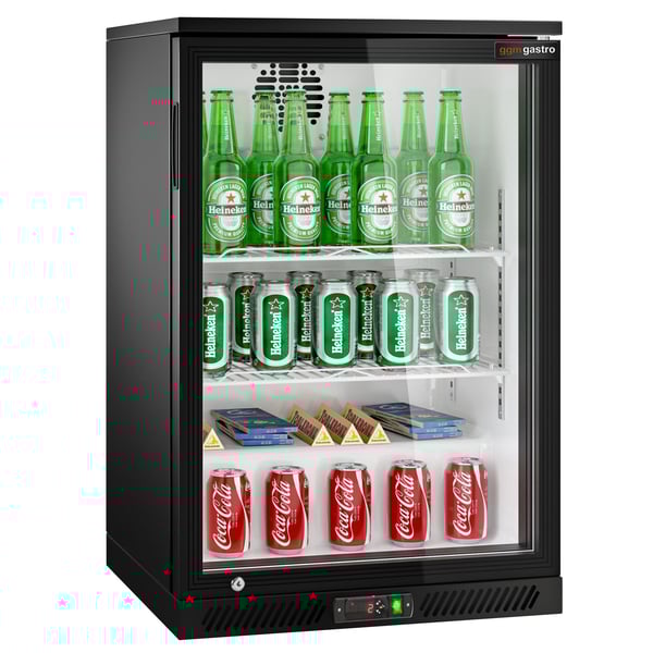 Професійний барний холодильник GGM Gastro BKTG1S об’ємом 126 л – незамінне обладнання, призначене для охолодження, зберігання та ефективної демонстрації бутильованої продукції в магазинах, ресторанах, торгових залах. Засклена конструкція дверей забезпечує прямий контакт клієнта із товаром, а внутрішнє освітлення вигідно представить викладку товару і цим наочно дозволить визначити місце розташування потрібного продукту, не відкриваючи дверцята - це дозволяє зберегти внутрішній температурний режим холодильника для напоїв.
