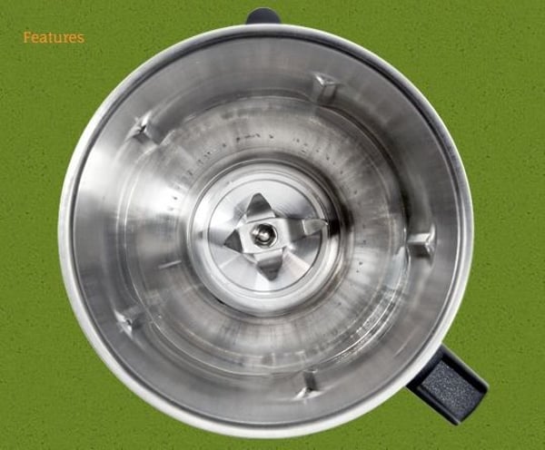 Корпус блендера виконаний з легкого алюмінієвого сплаву, спроектований так, щоб витримувати найбільші навантаження та забезпечувати максимальну стабільність кожної операції. Вузол леза, виготовлений з нержавіючої сталі, призначений для змішування, різання та подрібнення фруктів та льоду до стадії досконалості. З'єднання двигуна та ножів за допомогою унікальної муфти гума/метал усувається шум при роботі, а також здешевлюється та полегшується обслуговування. У разі зношування гумову муфту легко замінити не вдаючись до послуг спеціаліста з технічного обслуговування.