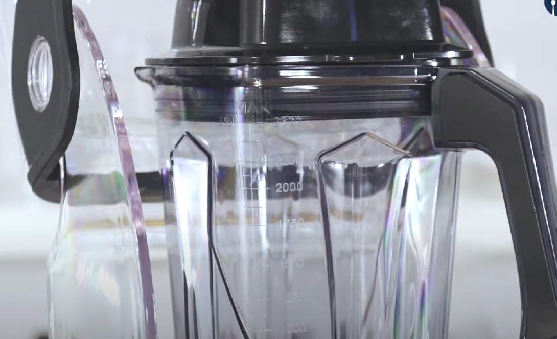 Блендер оснащено ковпаком з полікарбонату, що сприяє придушенню шуму та працює тільки при повністю закритій кришці.