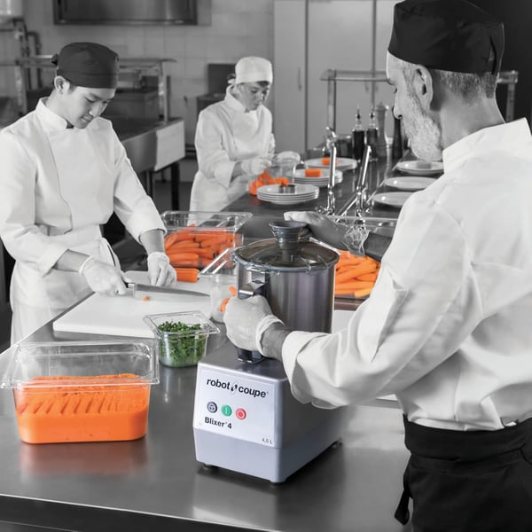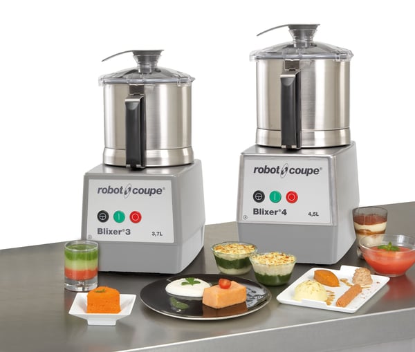 Бліксер Robot-Coupe Blixer 4-3000 поєднує в собі функції двох апаратів: блендера та куттера-міксера. Бліксер (збивалка-міксер) дозволяє отримувати найтонше подрібнення продукту завдяки потужному двигуну, швидкістю 3000 об/хв та спеціальній формі ножа з герметичною кришкою. Застосовується в ресторанах із класичною кухнею та на підприємствах, що мають у меню дієтичні страви. Бліксер швидко та якісно готує будь-які рідкі, напіврідкі та пюреподібні страви з сирих або варених продуктів. Призначений для приготування соусів, супів-пюре, паштетів, подрібнення м'яса, зелені, приготування майонезу, тіста та багато іншого. За допомогою апаратів Blixer можна приготувати будь-які закуски, страви та десерти.