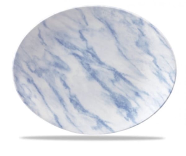 Овальна миска з блакитним відтінком Churchill із серії Marble. Блюдо зроблене з порцеляни із застосуванням кольорових глазурів.