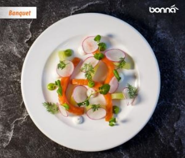 Серія посуду Banquet бренду BONNA виготовляється з професійної твердої порцеляни, стійкої до сколів, подряпин,