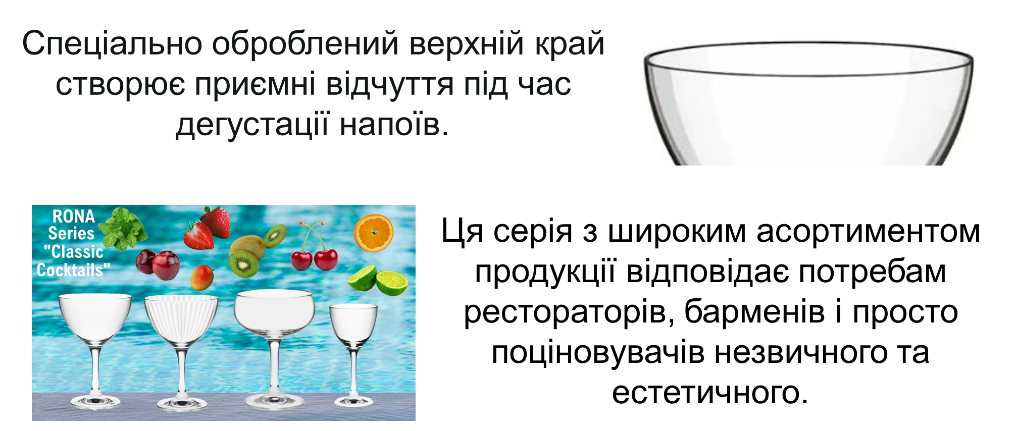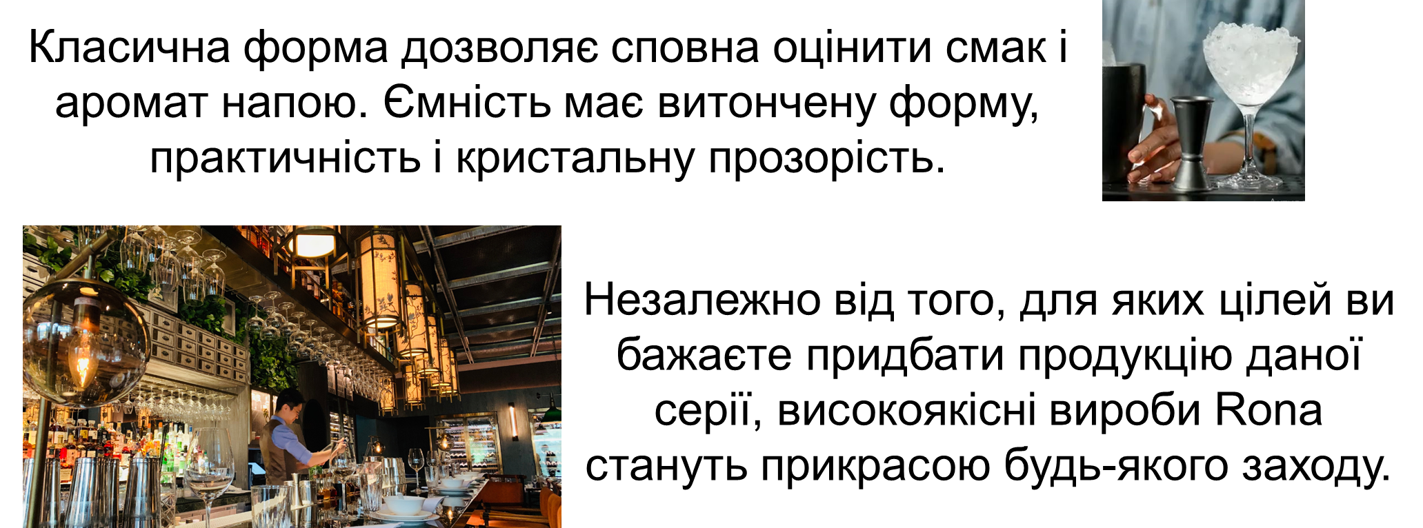 Rona – це всесвітньо визнаний виробник професійного скляного посуду зі Словаччини, відомий своєю високою якістю та бездоганною репутацією. Колекції барного скла від цього європейського бренду вирізняються витонченістю, різноманітністю декорів та форм, а також високою якістю ручної роботи. Компанія RONA має сертифікат ISO 9001, що підтверджує найвищу якість продукції за європейськими стандартами.