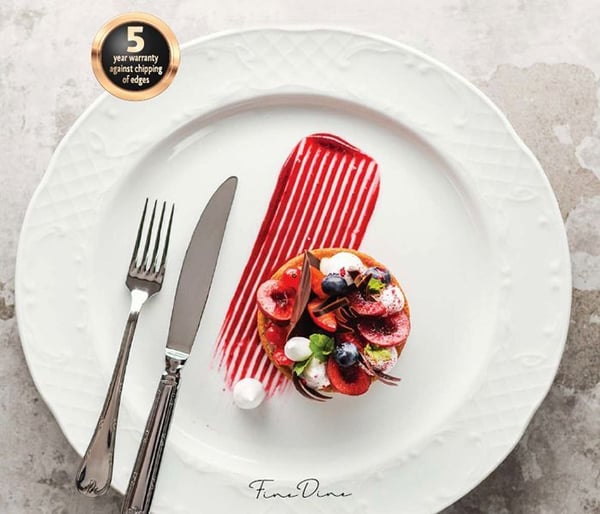 Поверхня бульйонки Fine Dine має міцну якість емалі з 5-річною гарантією на скол краю. Посилені краї захищають від сколів та дозволяють використовувати чашку для супу в мікрохвильових печах. Термостійкість тарілки Fine Dine становить 180°C.