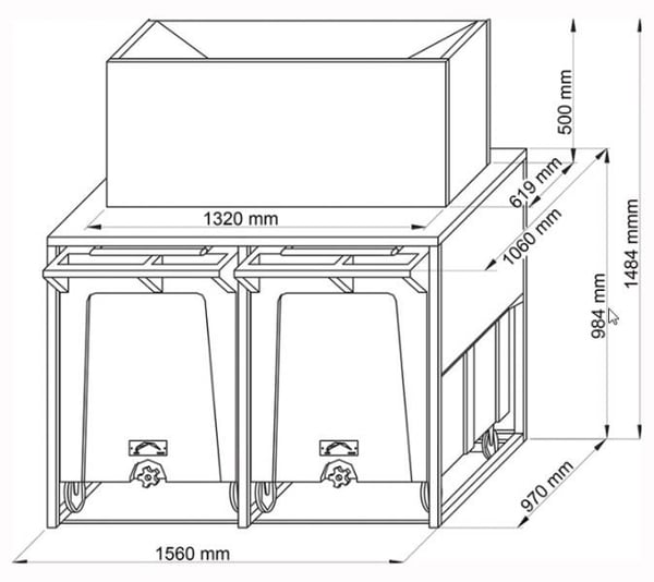 Місткість двох пересувних бункерів по 108 кг.