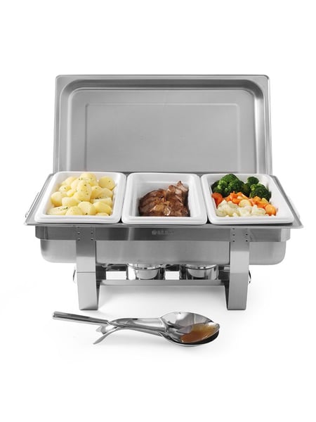 Чафіндіш Hendi 471005 - служить для короткочасного зберігання та підтримки в теплому/гарячому стані гарнірів, м'ясних, рибних та багатьох інших страв. Даний чафіндіш зручно використовувати на шведських столах, потокових лініях роздачі готових страв або у місцях із самообслуговуванням. Завдяки сучасному і стильному дизайну, марміт Hendi привертатиме увагу на кожному заході.