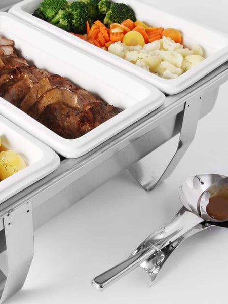 Чафіндіш для кейтерингу виконаний з високоякісної нержавіючої сталі, яка має високу кислотостійкість і стійкість до процесів корозії.