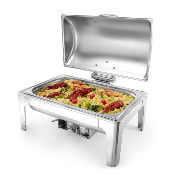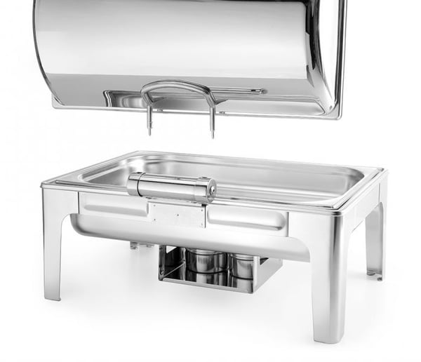 Чафіндіш для кейтерингу Hendi із дзеркальною обробкою виконаний з нержавіючої сталі, завдяки використанню високоякісного матеріалу та елегантному оздобленню, марміти Profi Line підкреслюють якість страви.