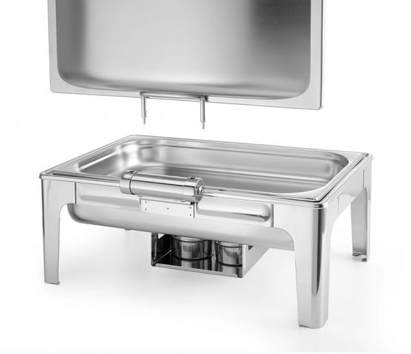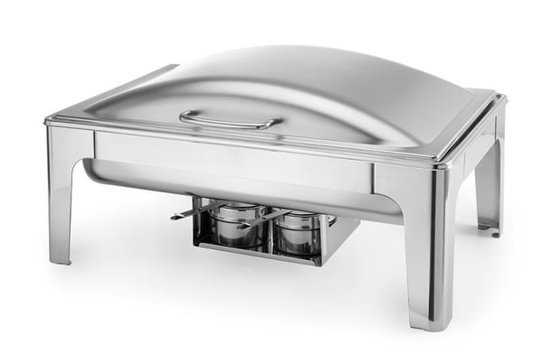 Чафіндіш для кейтерингу Hendi атласної обробки виконаний з нержавіючої сталі, завдяки використанню високоякісного матеріалу та елегантному оздобленню, марміт hendi підкреслює якість страви.