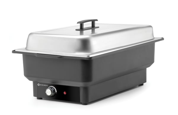 Чафіндіш 204825 - служить для короткочасного зберігання та підтримки в теплому/гарячому стані готових овочевих страв, плову, супів, каш та інших. Даний чафіндіш зручно використовувати на шведських столах, потокових лініях роздачі готових страв або у місцях із самообслуговуванням. Щоб температура залишалась оптимальною для кожної окремої страви, є плавне регулювання температури, що дозволяє скоротити ймовірність пересушування. Функція "індикація температури" полегшує процес роботи з мармітом.