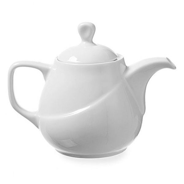 Чайник для заварювання чаю, виготовлений з удароміцної білої порцеляни, з ручкою та кришкою. Посилені краї, глазур високої якості. Можна використовувати в мікрохвильових печах та мити в посудомийних машинах.