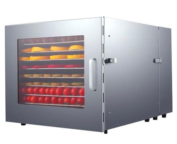 Горизонтальний дегідратор виготовлений із стійкої до окислення високоякісної харчової нержавіючої сталі та оснащений десятьма рівнями для сушіння продуктів розміром 375х390мм.