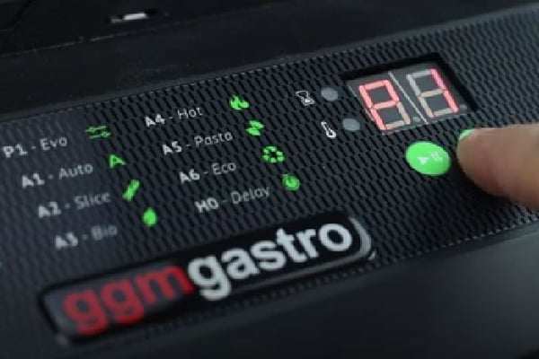 Електронна панель керування із цифровим дисплеєм, на якому відображаються: робоча температура, час, що залишився, номер програми.