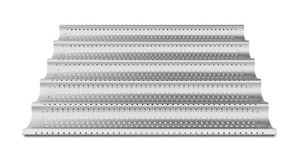 5 канальний лист TG 445 спеціально розроблений для випічки заморожених багетів і батонів. Мікроперфорація в противні сприяє поліпшенню повітрообміну. Є можливість випікати до 10 міні-багетів за 20 хвилин.
