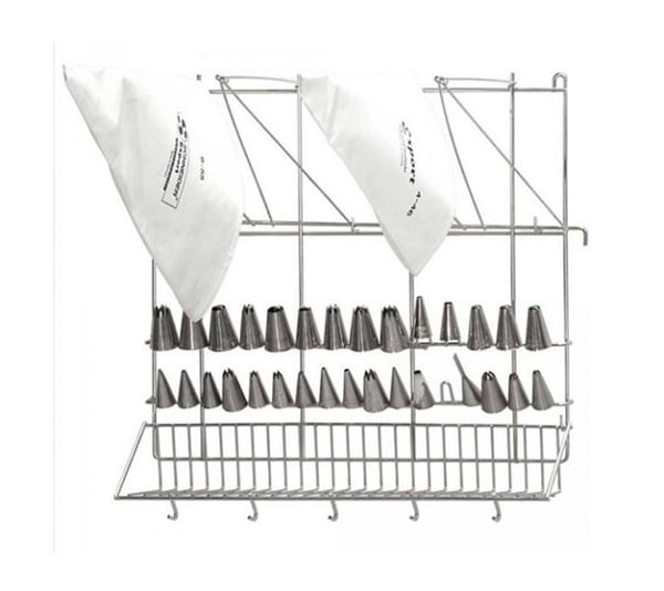 Тримач - ідеальне і надійне місце, щоб зберігати кондитерські мішки і насадки, що дозволить їм бути завжди на виду. Часто застосовується в ресторанах, кафе, кондитерських і інших закладах общественнного харчування.