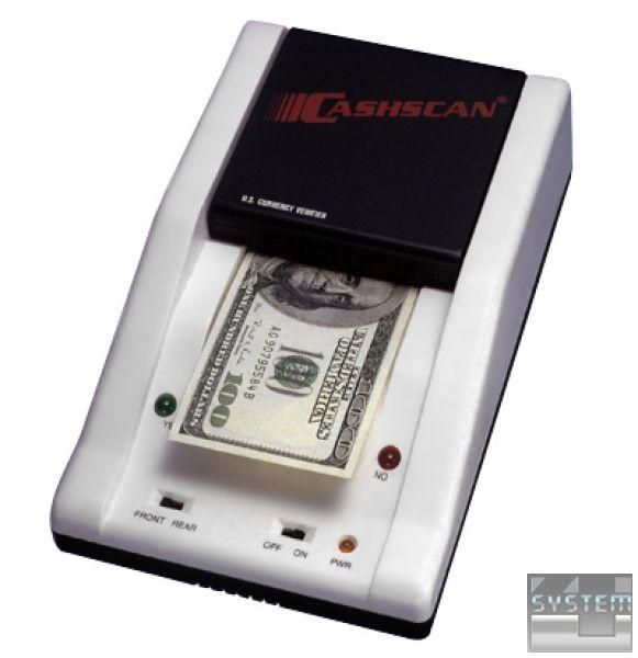 CASHSCAN 1800 призначений для виявлення сумнівних банкнот та підробок невисокого класу. Перевіряє банкноти всіх американських доларів, які перебувають у обігу. Виявлення банкнот, що не пройшли контроль, супроводжується звуковим сигналом і включенням індикатора червоного кольору. Підтвердження банкнот, що пройшли контроль, супроводжується включенням індикатора зеленого кольору. Апарат простий у застосуванні, компактний та міцний. Має можливість працювати з автономним живленням (батарейки типу АА, 6 шт.).