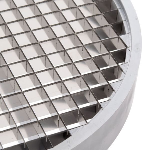 Комплект диска-решітки та диска-слайсера підійде для нарізки кубиків 10х10х10 мм помідорів, кабачків, перцю, цибулі, яблук для приготування салатів, перших та других страв. Можна поєднувати з іншими різальними дисками для нарізки кубиків нестандартного розміру. Поміщається у робочу камеру професійної овочерізки на вал двигуна. Після використання легко знімається для чищення без використання інструментів. Для очищення диск потрібно помістити диск під струмінь холодної води. Диск виготовлений з алюмінію, ріжучі ножі – нержавіюча сталь. Рекомендується використовувати 39881 для очищення ґрат.