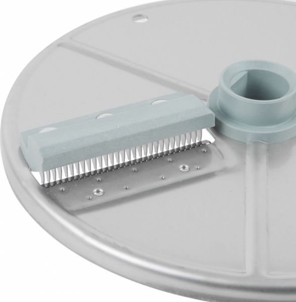 Підійде для нарізки моркви, огірків, редиски, селери, кабачків для приготування закусок, салатів, десертів, перших та других страв. Поміщається у робочу камеру професійної овочерізки на вал двигуна. Після використання легко знімається для чищення без використання інструментів. Для очищення диск потрібно помістити під струмінь холодної води. Диск виготовлений з алюмінію, ріжучі ножі – нержавіюча сталь.