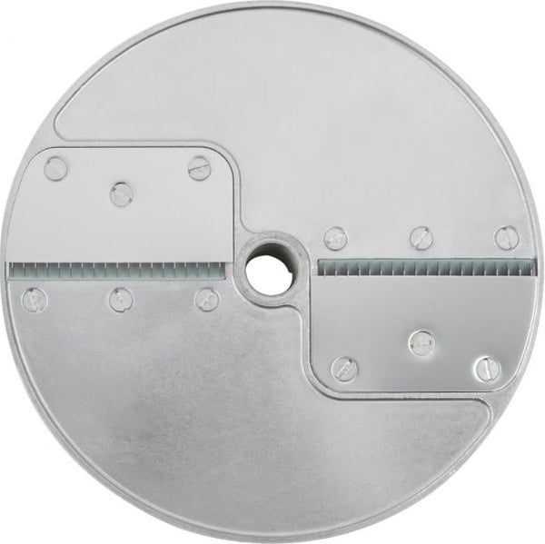 Підійде для нарізки моркви, огірків, редиски, селери, кабачків для приготування закусок, салатів, десертів, перших та других страв. Поміщається у робочу камеру професійної овочерізки на вал двигуна. Після використання легко знімається для чищення без використання інструментів. Для очищення диск потрібно помістити під струмінь холодної води. Диск виготовлений з алюмінію, ріжучі ножі – нержавіюча сталь.