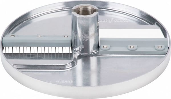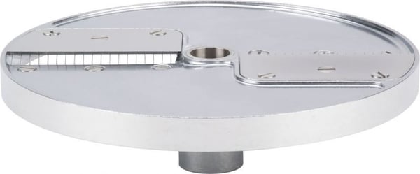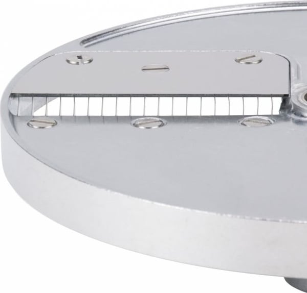 Підійде для нарізки моркви, кабачків, огірків, селери, кортоплі, редиски, буряків для приготування закусок, салатів, десертів, перших та других страв. Поміщається у робочу камеру професійної овочерізки на вал двигуна. Після використання легко знімається для чищення без використання інструментів. Для очищення диск потрібно помістити під струмінь холодної води. Диск виготовлений з алюмінію, ріжучі ножі – нержавіюча сталь.